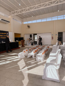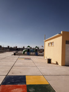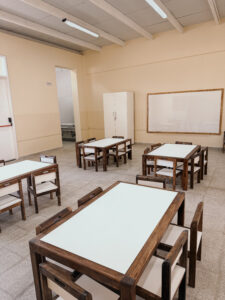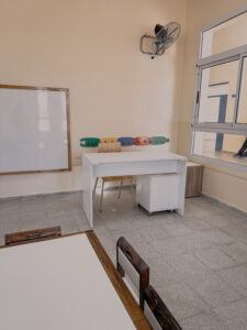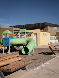 La obra consta de 6 salitas con sus respectivos sanitarios, 6 depósitos, una dirección, una cocina con economato, 1 sanitario para discapacitados, 1 sanitario para docentes, 1 sanitario para no docentes, área de circulación interior y patio institucional.